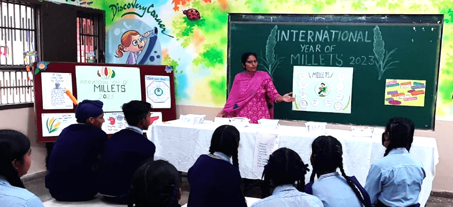 Mid Day Meal Scheme is used to serve to the students of Pre. Nursery to 8th Hygienic M.D.M will be ensured for the students.